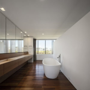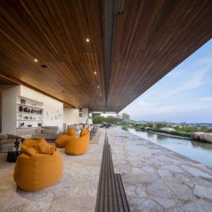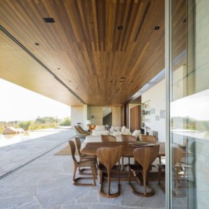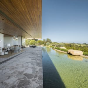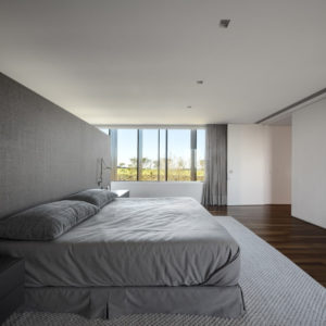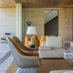Obszerne wnętrza domu wypełniają luksusowe meble i dodatki najwyższej jakości, jak chociażby nepalskie dywany. Atmosfera zmienia się w zależności od światła, od monochromatycznej aż do naturalnych tonacji ziemi. Kropkę na „i” stanowi wyjątkowa kolekcja sztuki właścicieli, w tym ceramika projektu Pabla Picasso czy Burble Marxa.