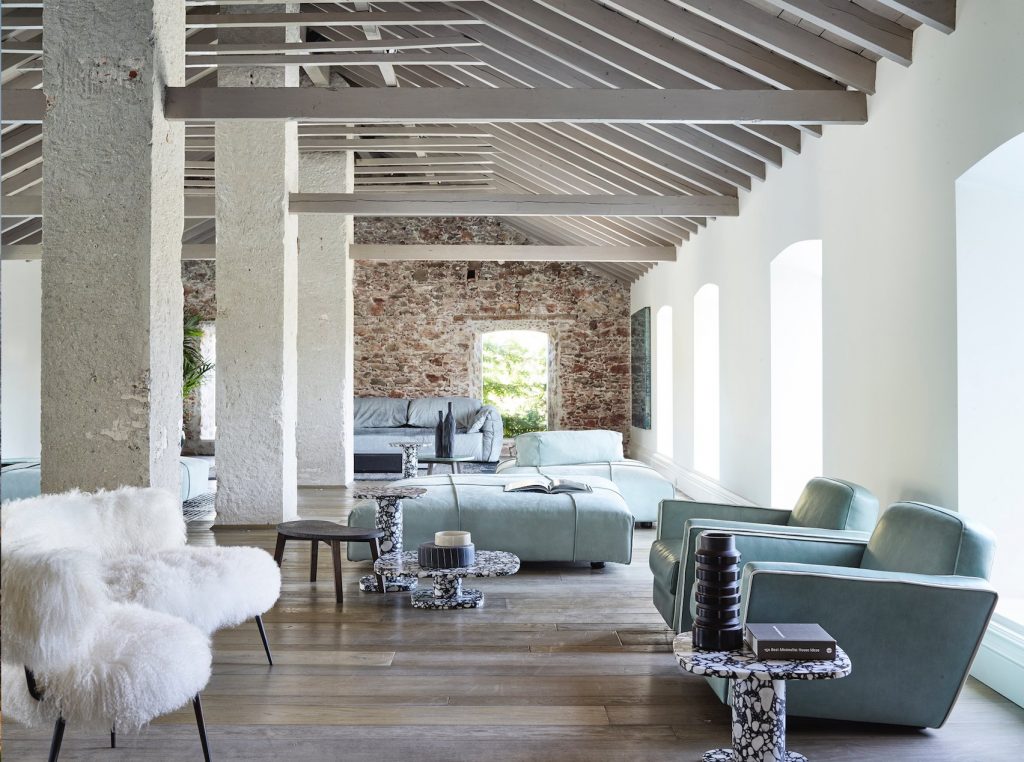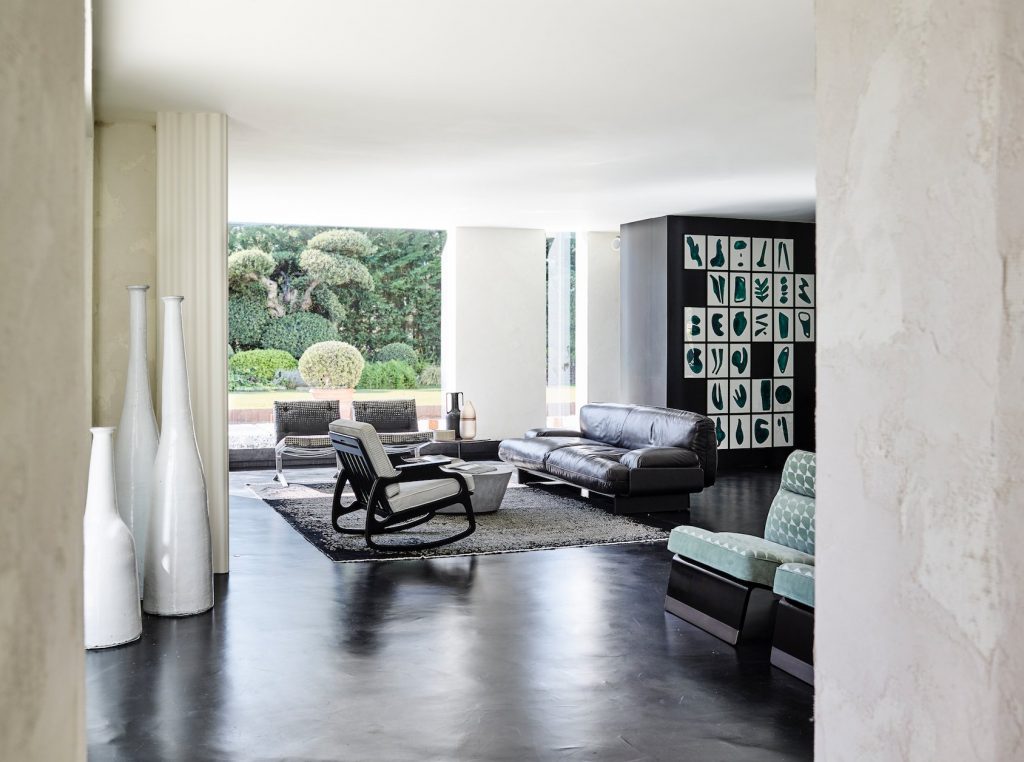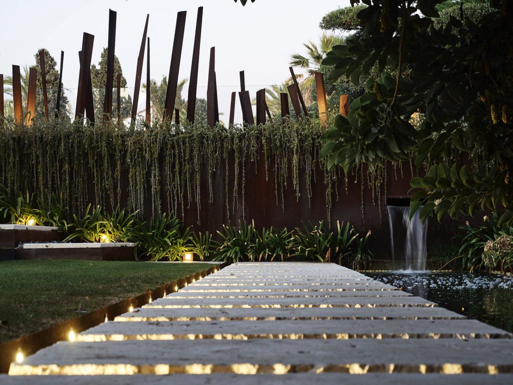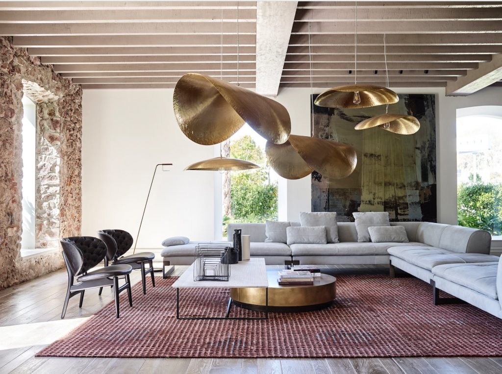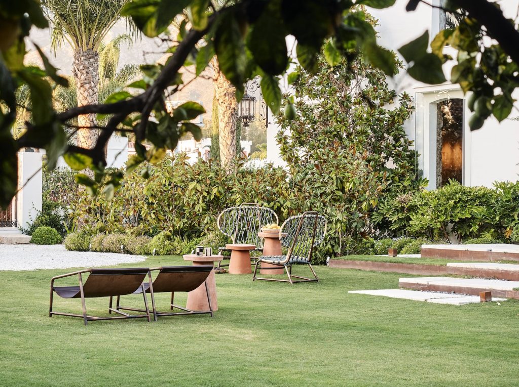 Wreszcie imponujący ogród staje się idealnym miejscem na plenerową wystawę włoskiej marki. Krzesła, fotele i inne elementy wyposażenia wykonane są z rur miedzianych w połączeniu ze skórami, a ich uzupełnieniem są niewielkie stoliki z wypalanej gliny. Efektem końcowym jest prawdziwy dom, ale także galeria sztuki, która sprawia, że odwiedzający się czuje całkowicie pochłonięty przez tętniącą życiem, kosmopolityczną i międzynarodową przestrzeń wokół niego.