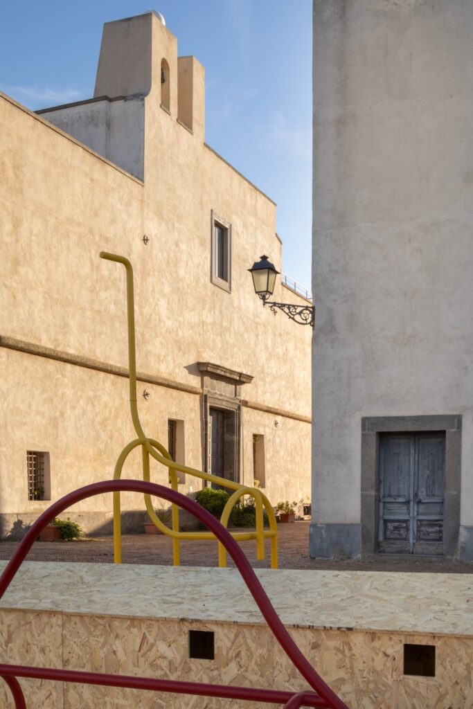 Rozległy Piazza d’Armi w Castel Sant’Elmo zamieniono w kolorowy plac zabaw dzięki kolekcji stylizowanych rzeźb zwierząt Luca Boscardin, wykonanych przez Magis przy współpracy z Metalco. Żyrafa, krokodyl, goryl i dinozaur – cztery stwory z rur stalowych o przyjaznych i minimalistycznych formach zapraszały do zabawy, odkrywania oraz aktywności na świeżym powietrzu. Z niektórych perspektyw przybierały formy wręcz abstrakcyjne, lecz zmiana punktu widzenia uwidaczniała ich charakterystyczne sylwetki, wyróżnione kolorem i wyobraźnią.