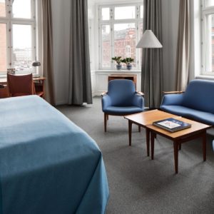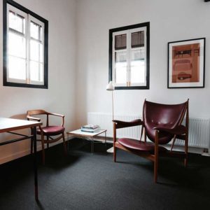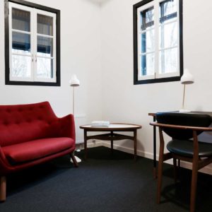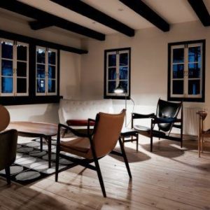 Każdy z sześciu pokoi (wszystkie nazwane są na cześć dzieł Finna Juhla), a także wszystkie pozostałe przestrzenie wspólne, zostały wyposażone w klasyki duńskiego projektanta. Znajdziemy tam między innymi sofę „Poet”, fotel „Chieftain”, stoły, komody etc. Goście podziwiać mogą takżę jego szkice oraz grafiki ozdabiające ściany hotelu. Całe wnętrze zachowane jest w skandynawskim stylu- białe ściany, parkiet w pasy, podwójne, białe okna.