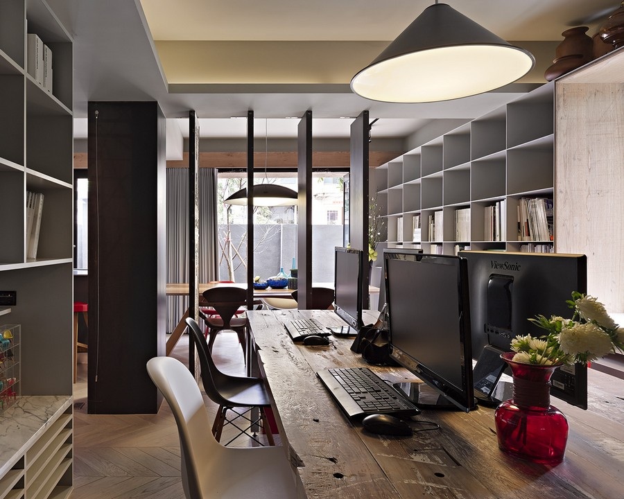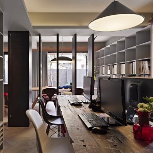 Taipei, to tam, w byłej wiosce militarnej, znajduje się ten piękny apartament dwojga designerów. Oboje pracują w domu, więc za dnia ich mieszkanie zmienia się w inspirujące studio, by na powrót wieczorem odzyskać swój przytulny charakter. Apartament łączy azjatyckie elementy historyczne z europejskim stylem. Całość niezwykle praktyczna w swojej prostocie, ale jednocześnie piękna i wysmakowana.
