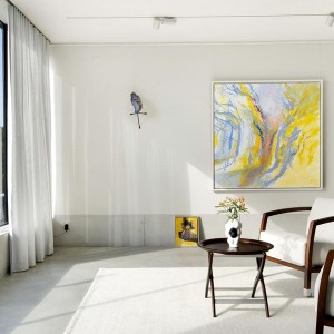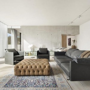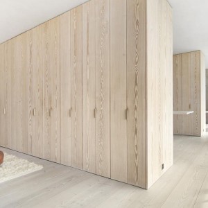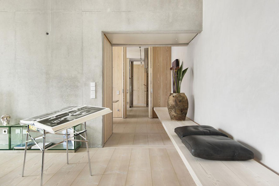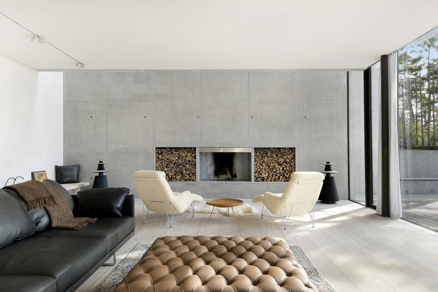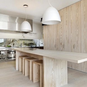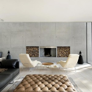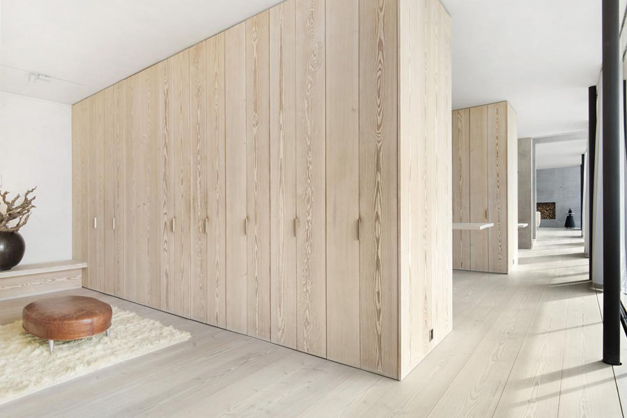 289 metrów dwupoziomowej powierzchni zostało wypełnione drewnem i betonem – materiałami mającymi za zadanie budowanie napięcia pomiędzy ciepłem i chłodem. Minimalistyczny wystrój wnętrz – typowy dla Skandynawii, tu jawi się w najwyższej klasy umeblowaniu i sprzęcie audio-wizualnym Bang&Olufsen.