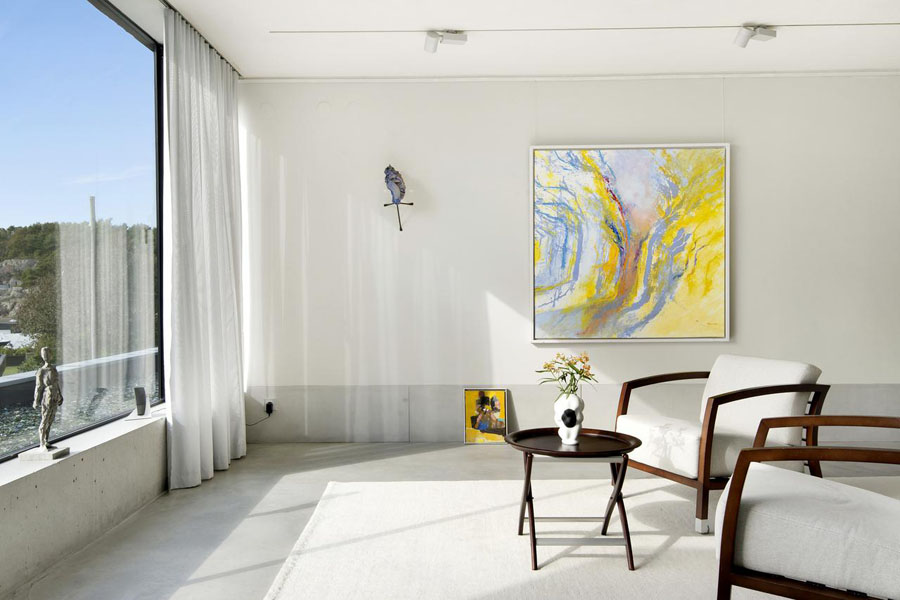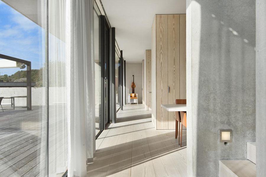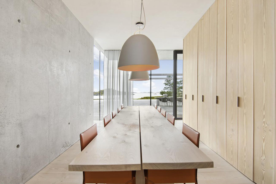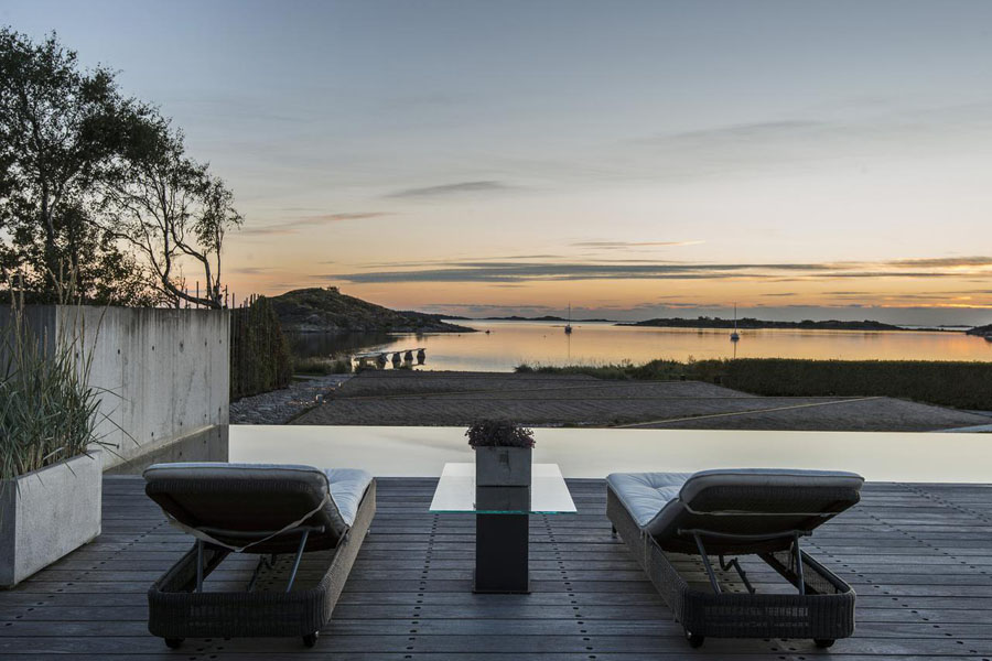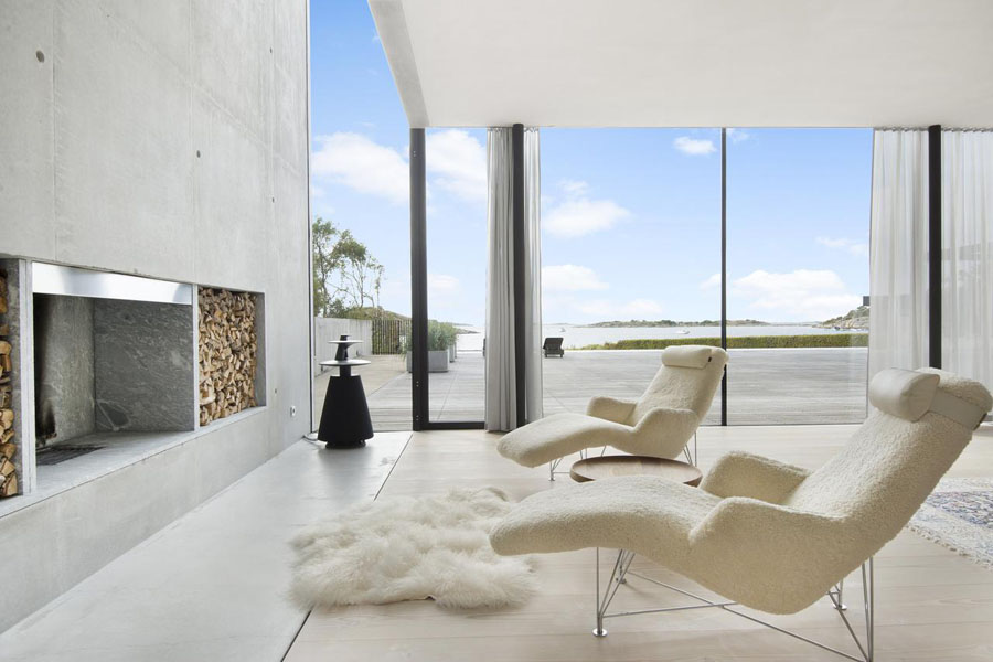 Beton, szkło, drewno – ujęte w nowoczesną bryłę szwedzkiego domu zbudowanego nad brzegiem morza, stanowią łącznik z otaczającą naturą i kolorami zewnętrza. Celem architektów z firmy Gert Wingårdh było uzyskanie maksymalnego komfortu i łatwości użytkowania domu, przy jednoczesnym wyeksponowaniu walorów oszałamiająco pięknego otoczenia.