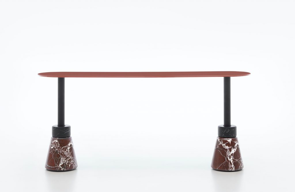 Nowo zaprojektowany w trzech różnych wysokościach, niski stolik Menhir szczyci się bardziej dramatycznym okrągłym blatem. Dodatkowo teraz pojawia się również jako wysoka konsola – koncepcja pochodząca z oryginalnych projektów, które są obecnie produkowane po raz pierwszy.