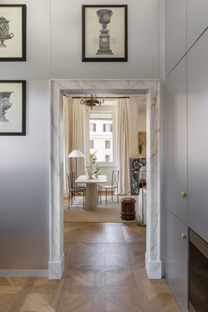 Architektura Casa Naman, opracowana przez Filippo Fiorę i Federico Sigale z mediolańskiego studia 13.1 Architecture & Decor, prowadzi wyrafinowany dialog z Wiecznym Miastem. Apartamenty rozmieszczone na dwóch piętrach historycznego XVIII-wiecznego budynku zostały nazwane na cześć rzymskich bogów i legend, z każdą przestrzenią o odrębnej tożsamości architektonicznej i narracyjnej: Janus, Aeneas i Vesta odzwierciedlają przecięcie rzymskiego dziedzictwa z nowoczesnym luksusem. Cała koncepcja to list miłosny do Rzymu – każdy detal czerpie z wielowiekowej historii miasta, od monumentalności klasyki po widowiskowość baroku, z zamiarem otoczenia gości legendarnym pięknem Rzymu.