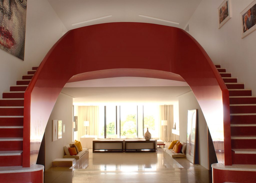 Klatka schodowa to miejsce przejścia i synonim ruchu. Jest to przejście, które musi płynąć. Schody muszą być łatwe do wchodzenia i schodzenia, a to już kwestia praktycznego projektu, to samo dotyczy poręczy… Pozycja schodów w projekcie odgrywa decydującą rolę w ogólnej ergonomii projektu architektonicznego: czasami wystarczy zmodyfikować położenie klatki schodowej, aby sprzyjać lepszej cyrkulacji w przestrzeni. Po raz kolejny jest to kwestia radzenia sobie z przestrzenią pod względem ruchu lub przepływu, co jest tym trudniejsze w przypadku ograniczonej przestrzeni, jak na przykład na jachcie… Architektoniczne know-how wyraża się w pełni, jeśli chodzi o obsługę przejścia, geometrię, kształt schodów oraz zaprojektowanie balustrady przed schodami. Zamknięte lub otwarte cechy klatki schodowej mogą być spiralne lub rzeźbiarskie, w takim przypadku zbliżamy się do nich ze wszystkich czterech stron…