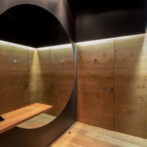 – Wykluczenie przenikliwych dźwięków, rozmów, odgłosów było absolutnie konieczne i dzięki specjalnym rozwiązaniom i materiałom akustycznym udało nam się to uzyskać, a przez to zagwarantować komfort celebracji posiłku oraz intymność rozmowy przy jednoczesnym słuchaniu muzyki i rozmówcy – zwraca uwagę Robert Majkut. – Dodatkowo, pracując nad akustyką zrównoważyliśmy pewną niezbędną surowość, która trochę wynika z takiego miejsca, chociażby z pewnej koncepcji estetycznej. Zestawiliśmy surowość z bardzo dopracowanymi elementami, które wpisują się w tą poetykę metafory, jak lampy zwieszone z sufitu. Te formy przypominają papierowe lampiony, a są pięknymi jedwabnymi abażurami ze szlachetnym wykończeniem wewnątrz, dającymi dzięki złotej barwie łagodne i ciepłe sączące się światło.
